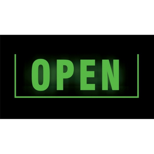 This LED open sign board features bright green LED illumination, ensuring excellent visibility from a distance and in low-light conditions. The high-quality LED lighting is long-lasting, consumes minimal power, and delivers consistent brightness throughout its lifespan.
