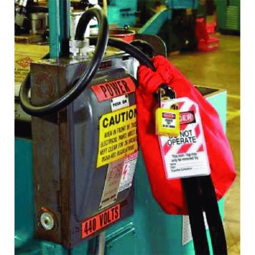 The bright red color enhances visibility in industrial and commercial environments, clearly indicating locked-out equipment and reinforcing workplace safety awareness. High visibility is essential in busy facilities to prevent accidental reconnection of power sources.